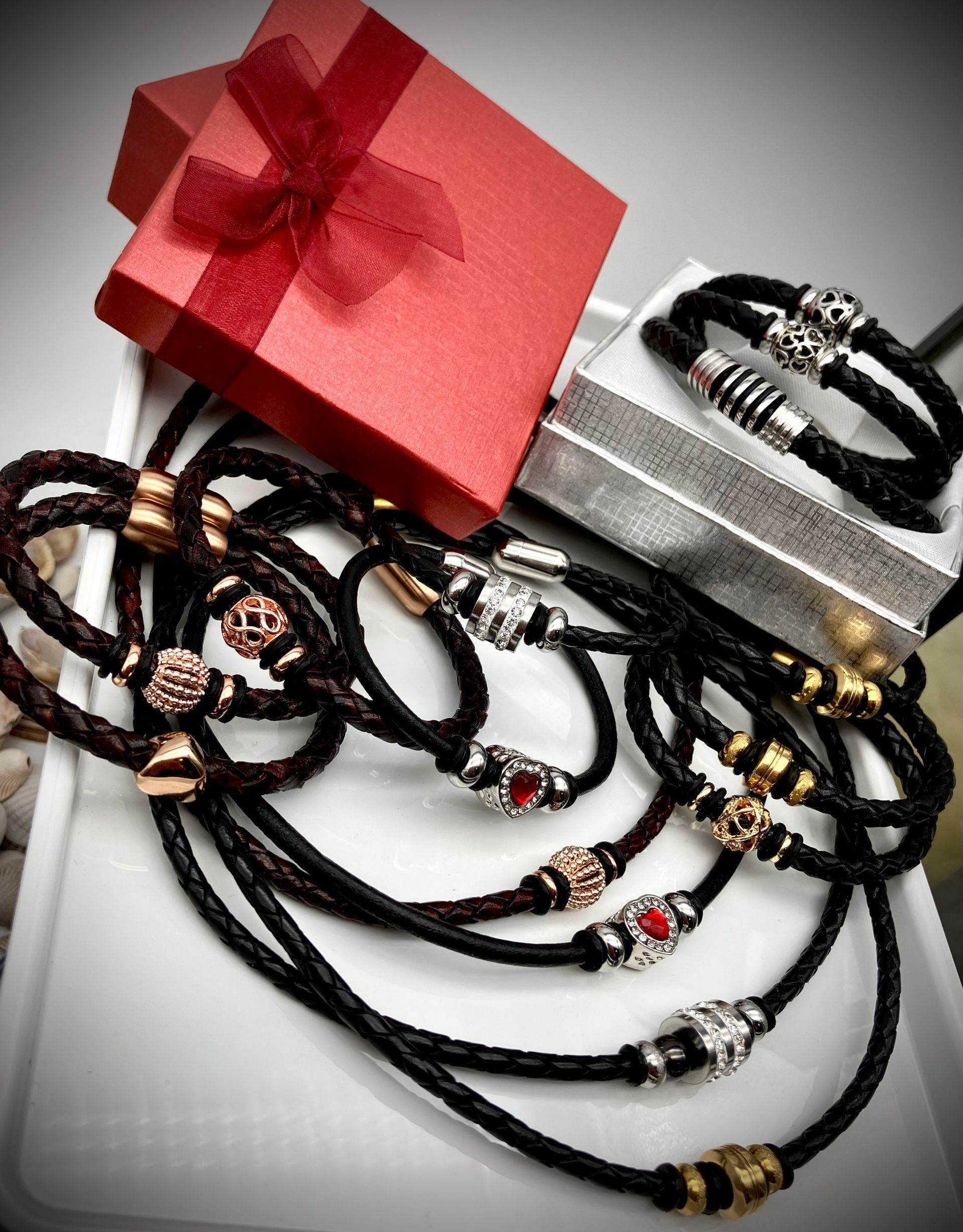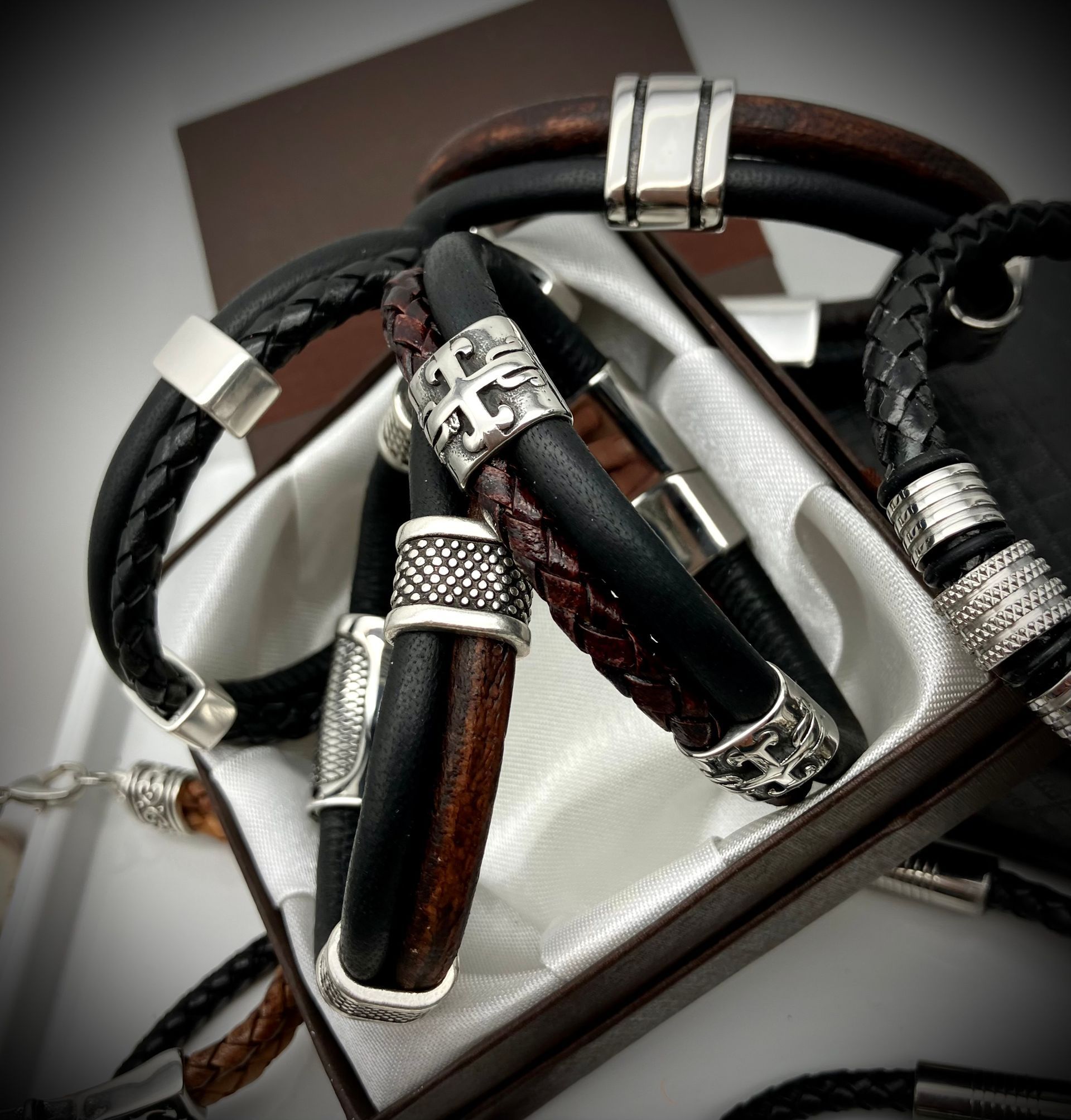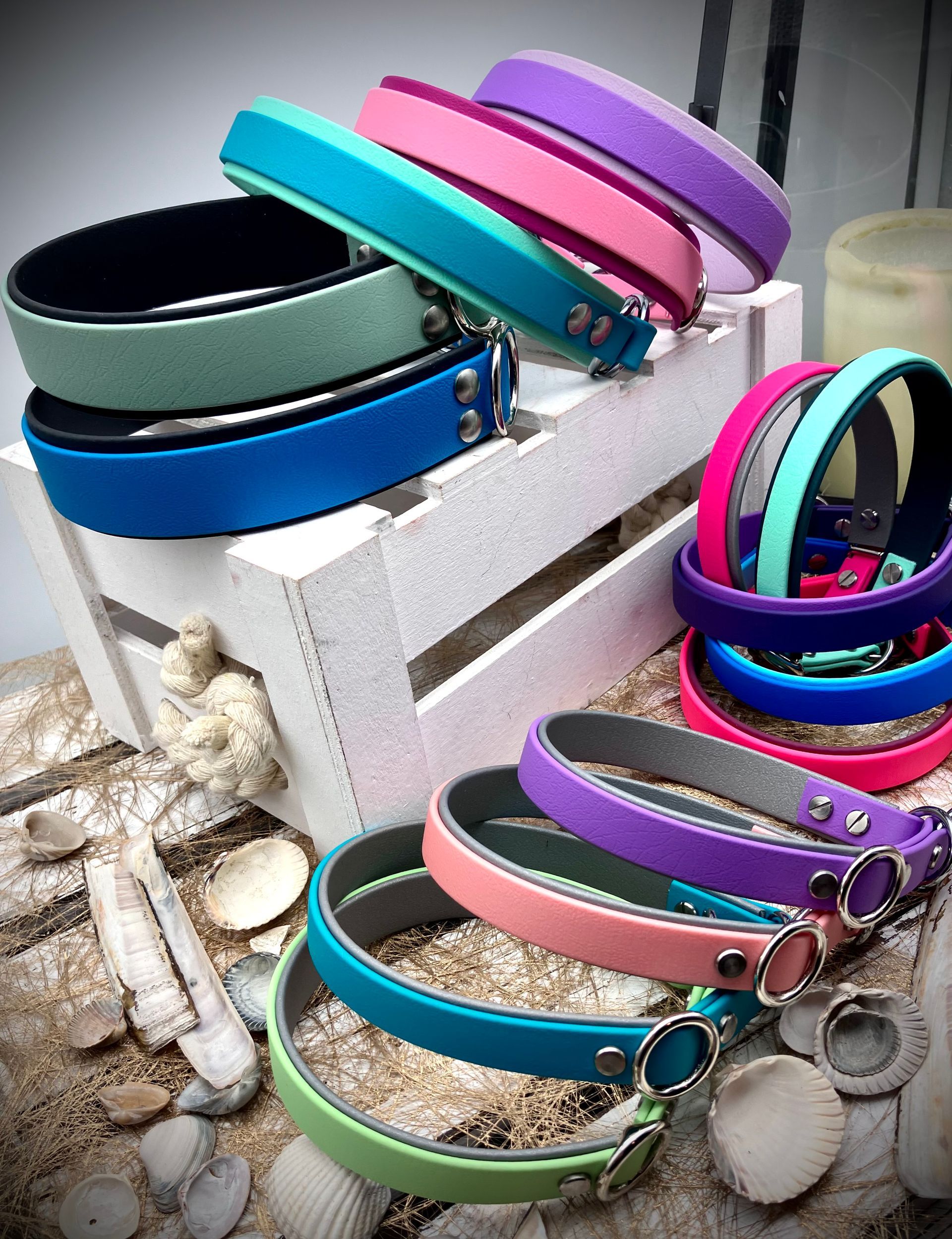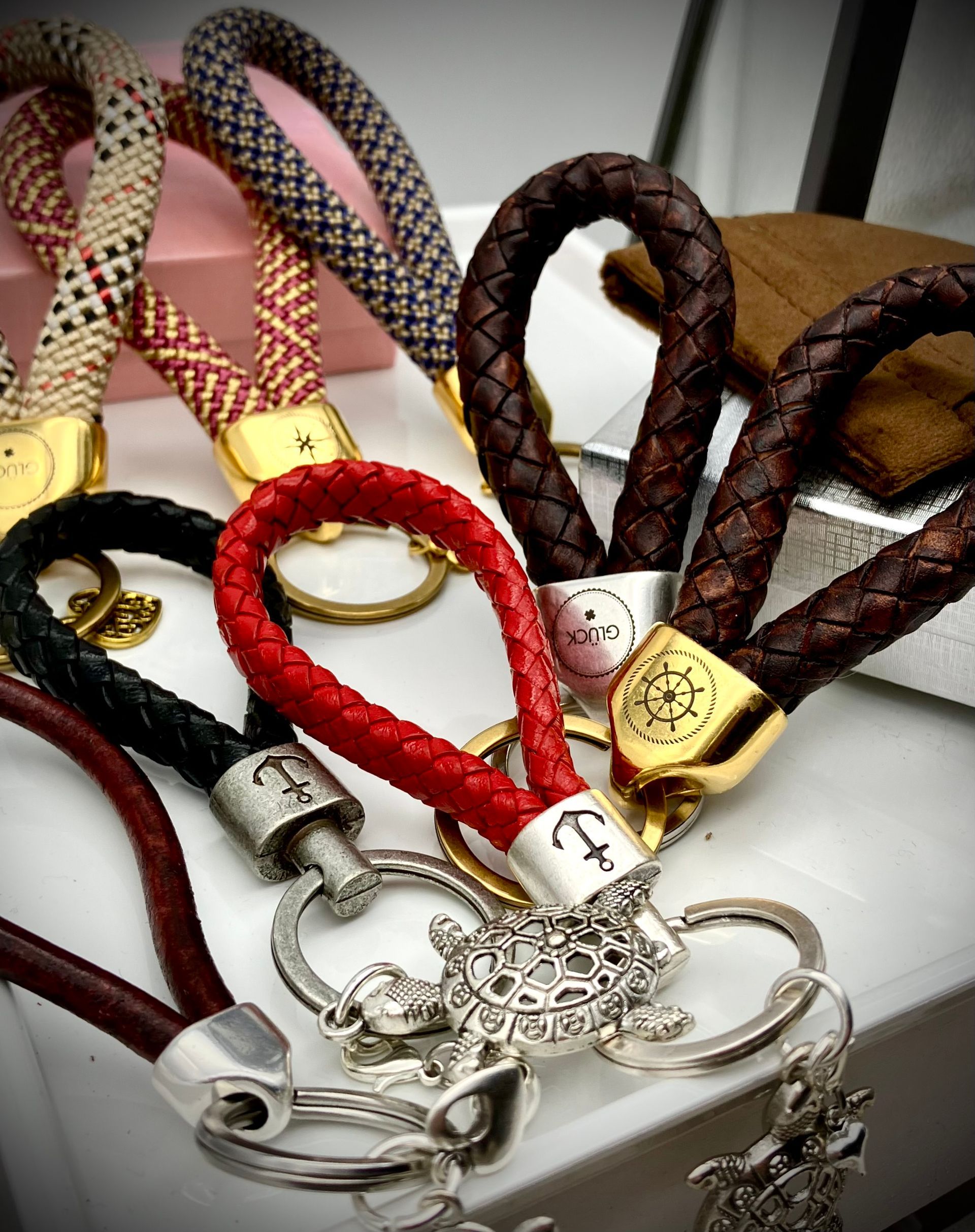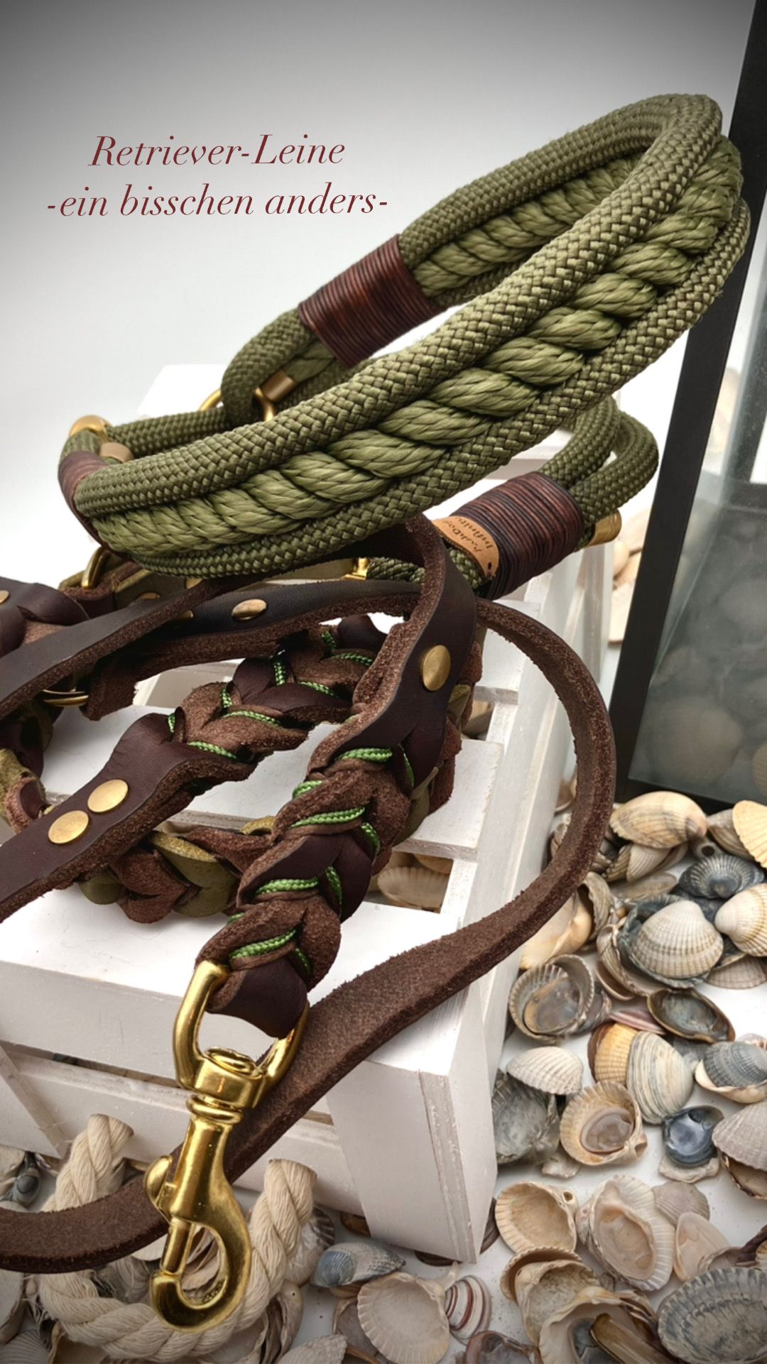 Ihr habt die Wahl: Seil (Ø 8, 10 und 12 mm), Fettleder, Gurtband mit oder ohne Borte, Beschläge. Alle Materialien stehen in vielen Farben zur Verfügung.