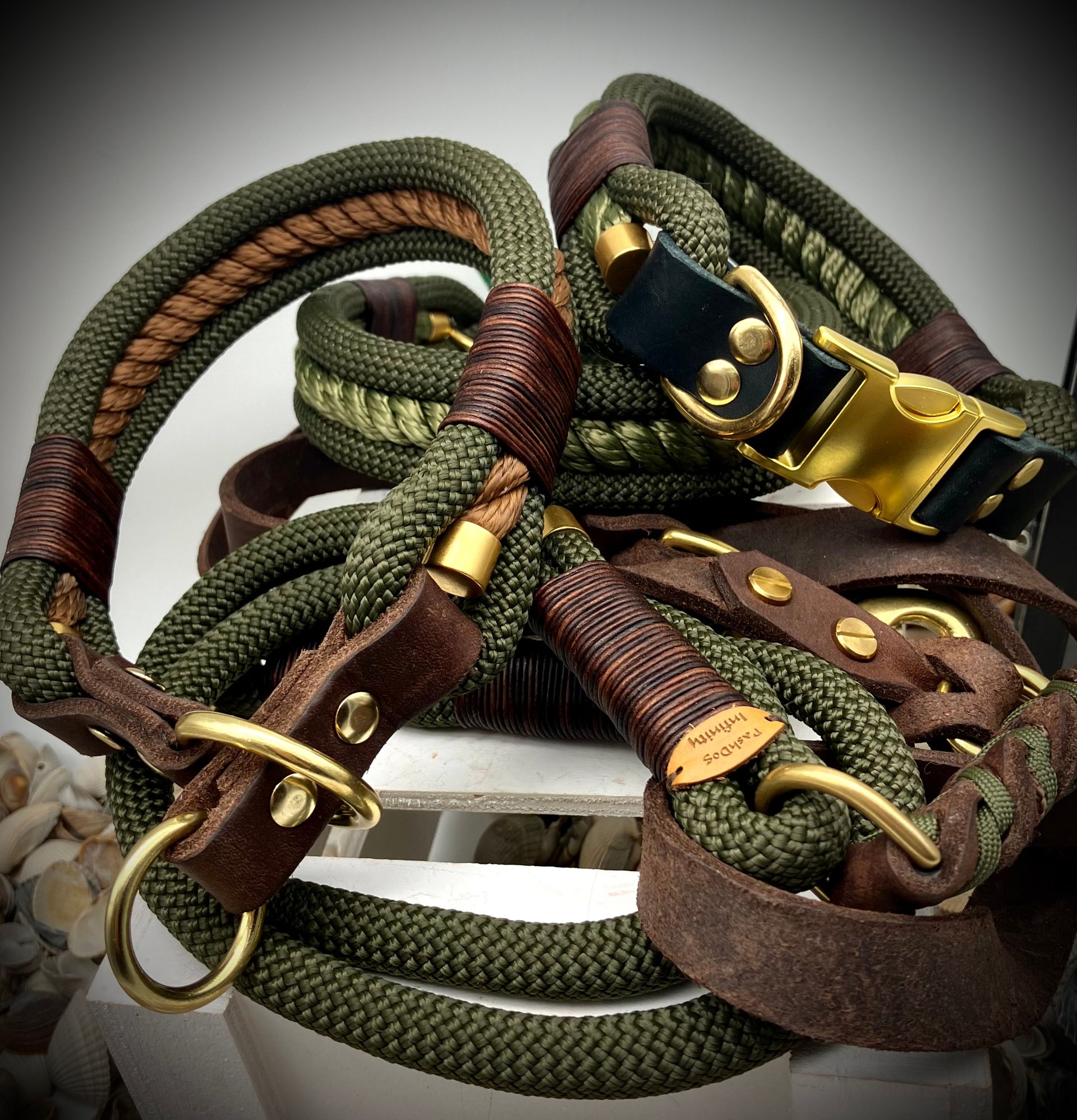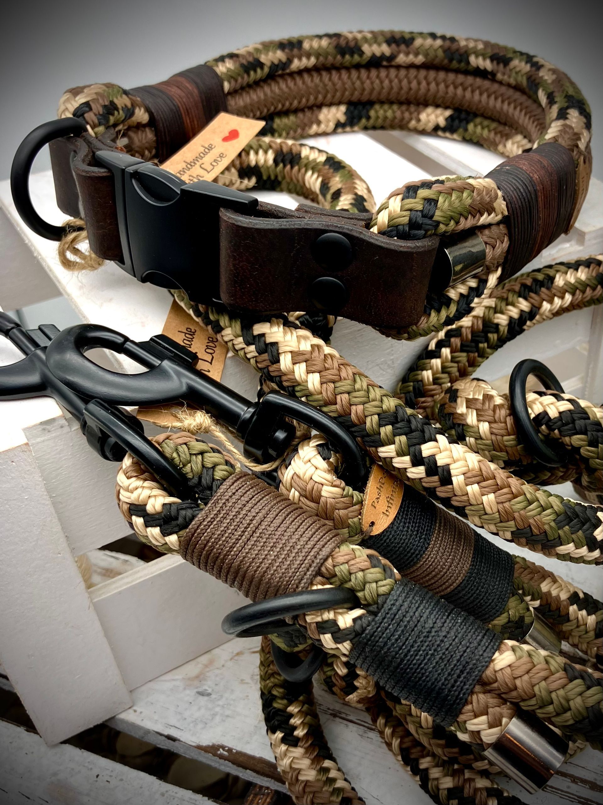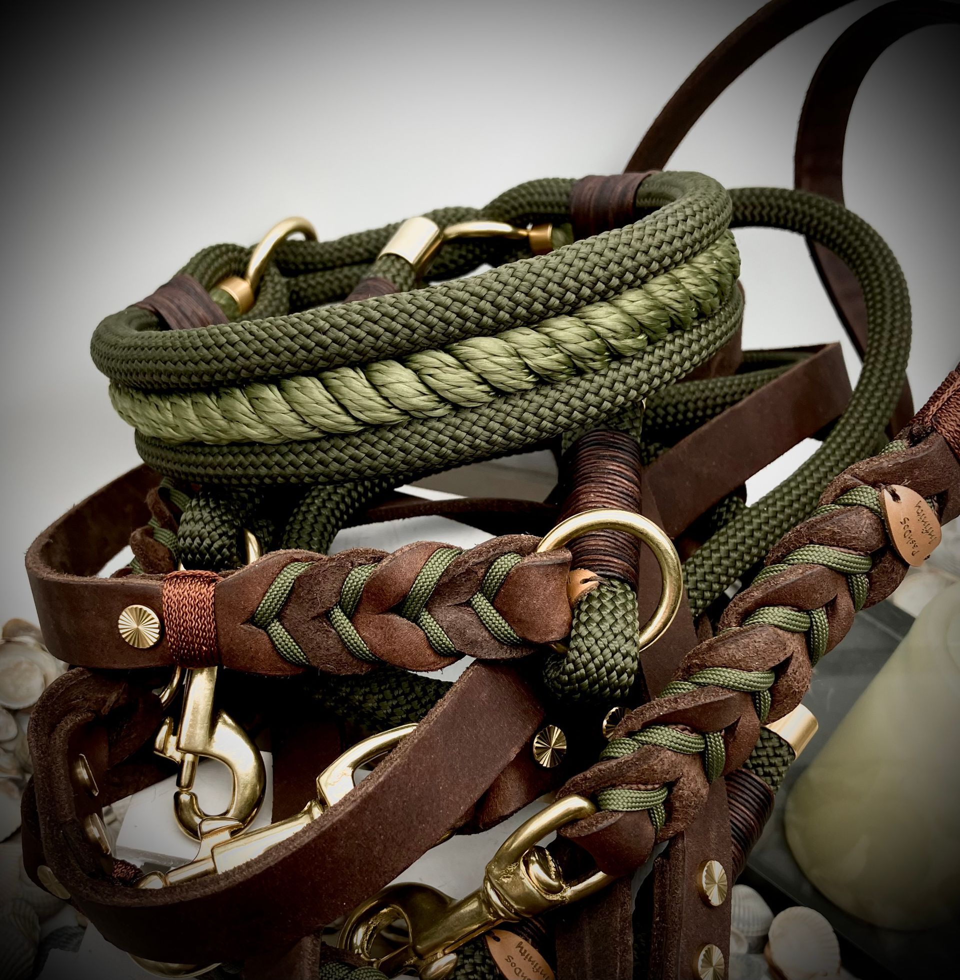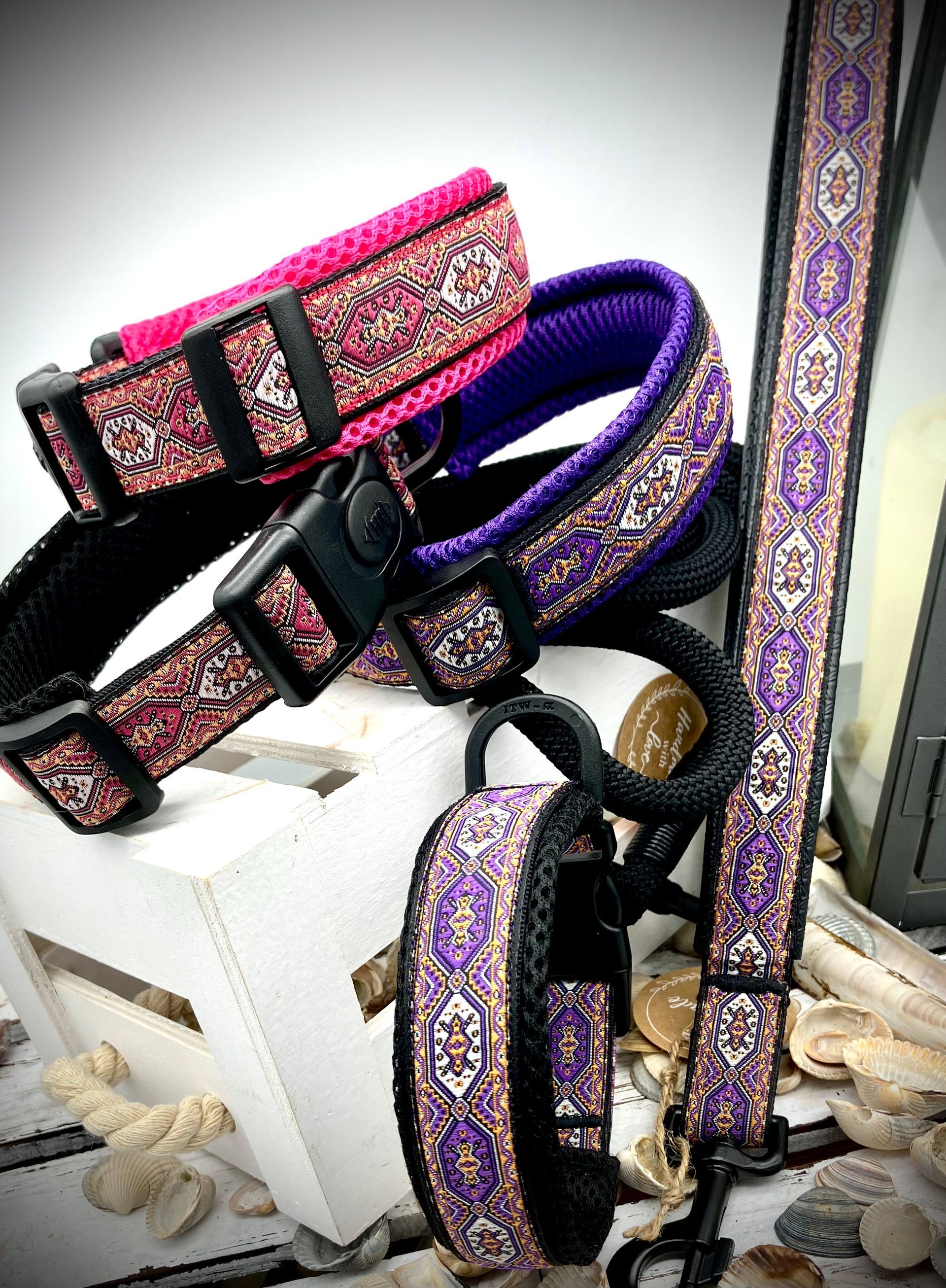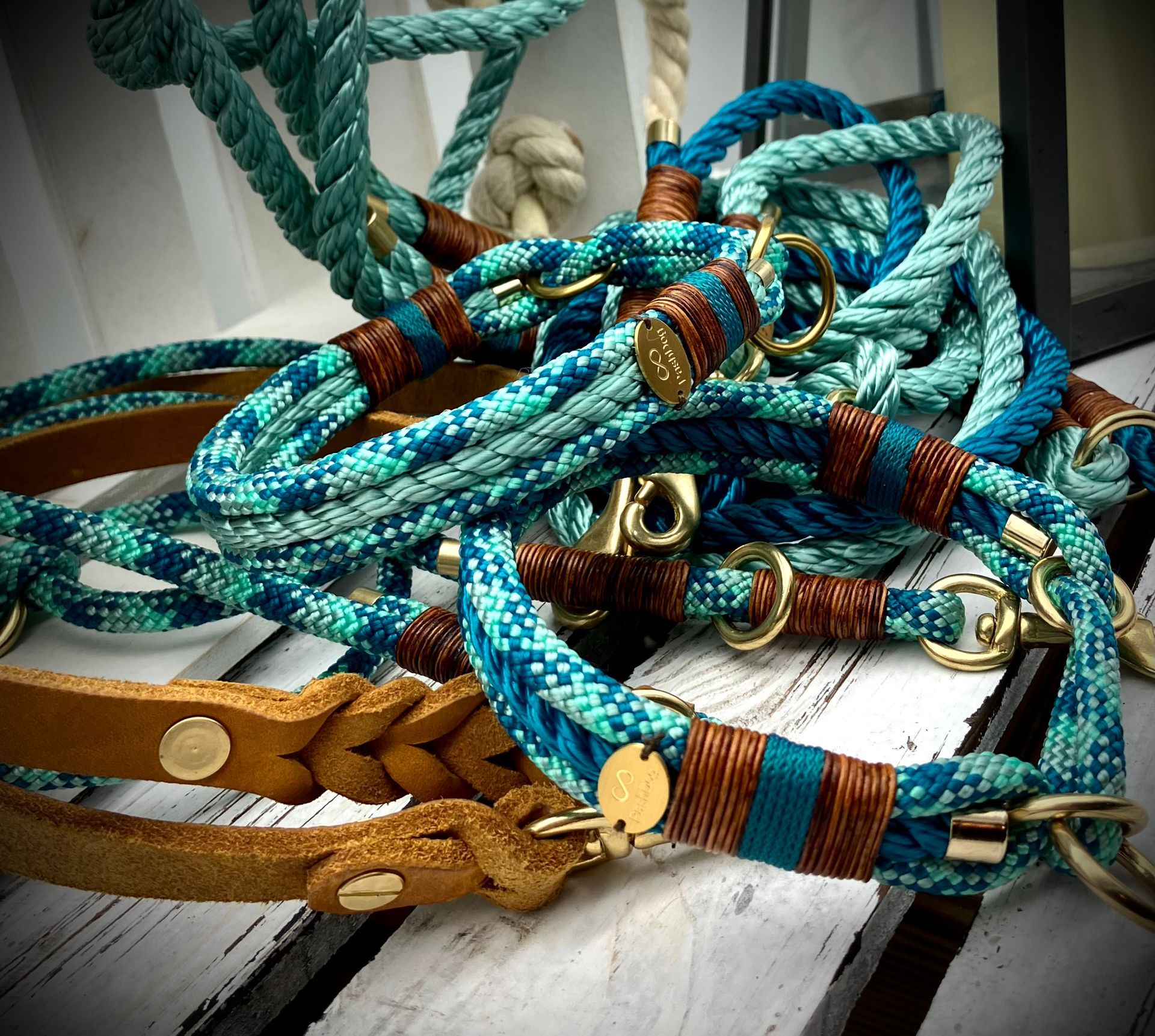 Ich fertige Hundehalsbänder und Hundeleinen entweder aus PPM-Seil (Gedreht, Rundseil, Spiralgeflecht), Hundeleinen-Seil kombiniert mit Fettleder oder aus Gurtband + Polsterung an.