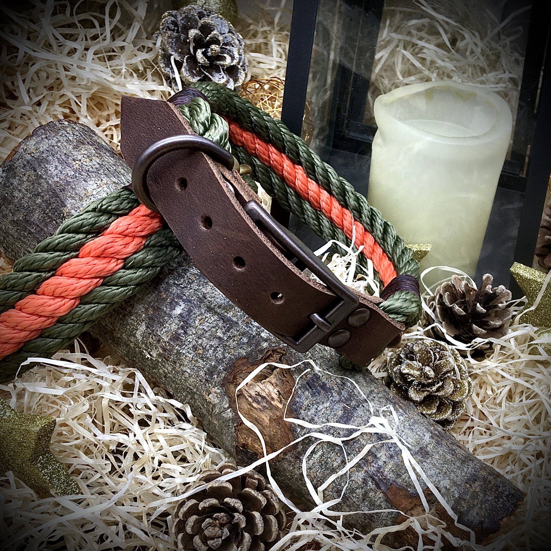 Hundehalsbänder und Leinen mit einer Echtleder-Takelung nicht in der Waschmaschine waschen, sondern mit einem feuchtem Tuch abwischen!